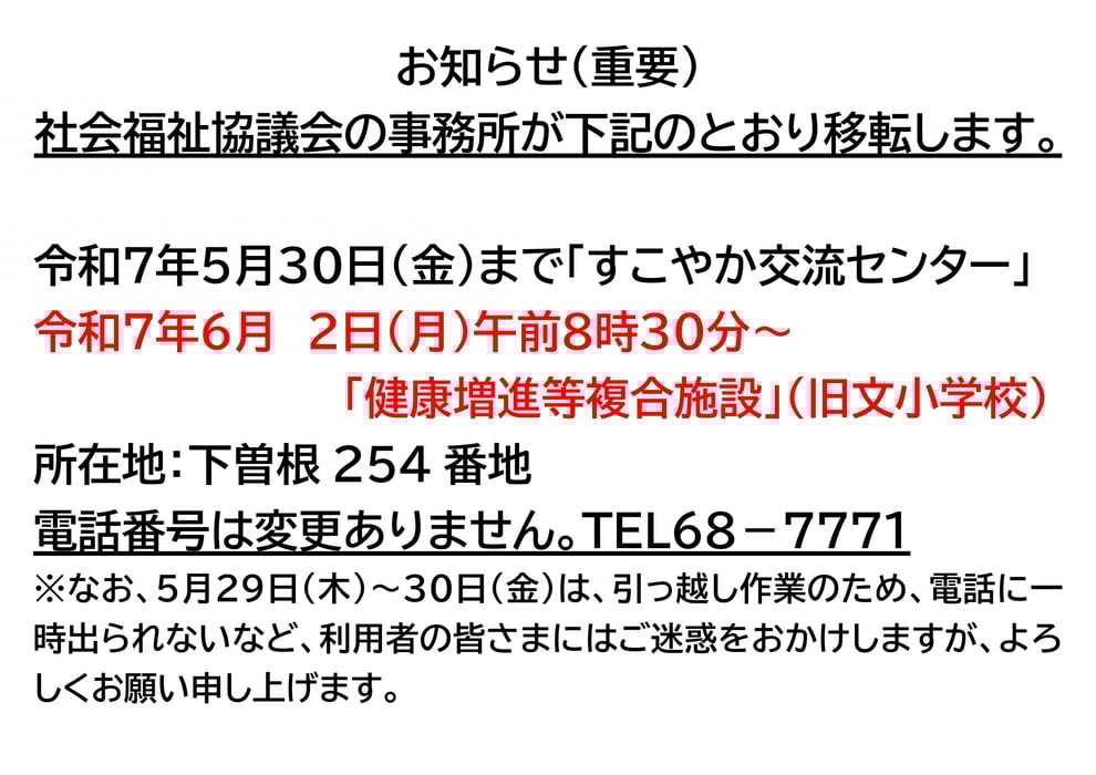 【重要】事務所の移転について